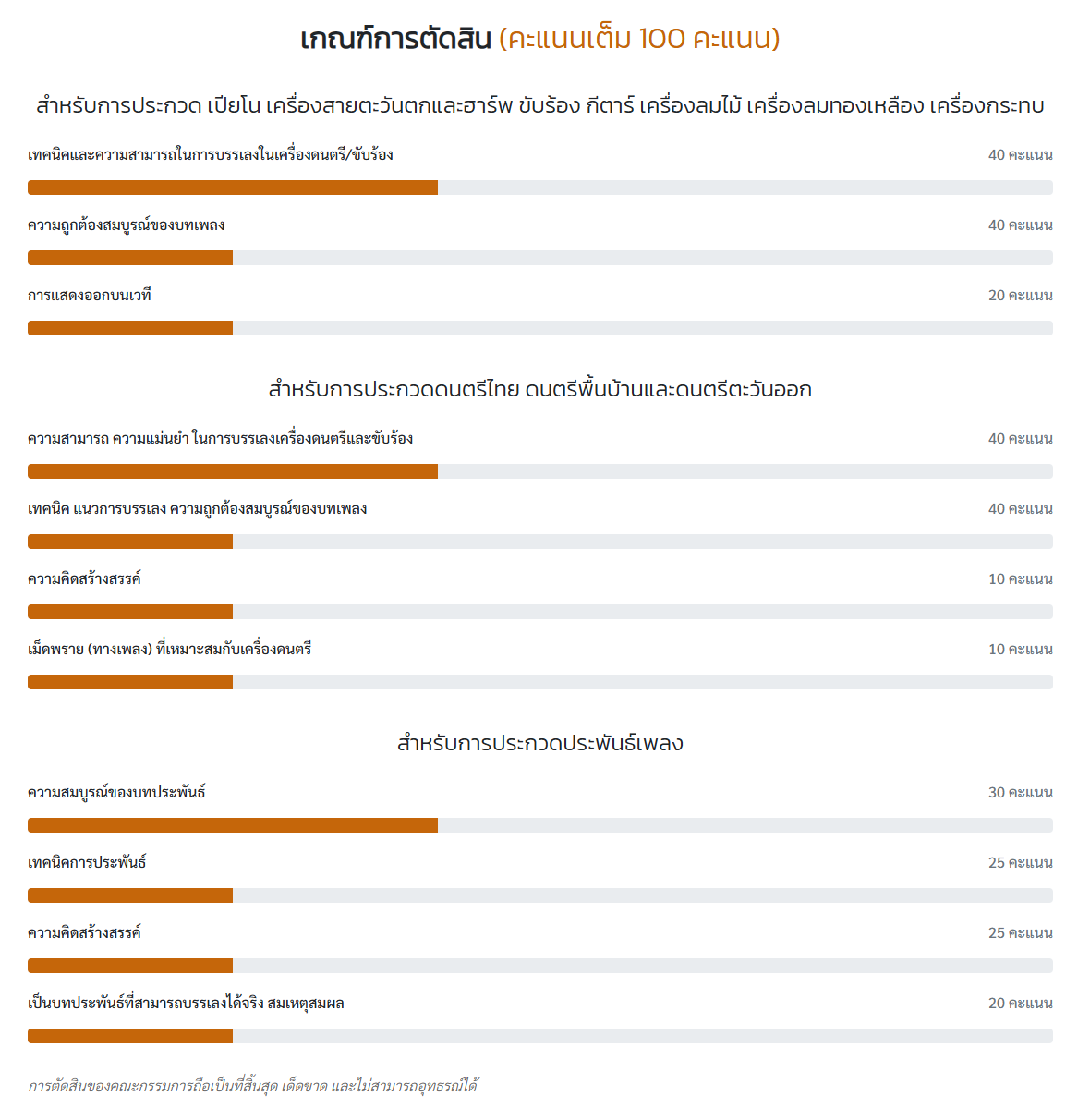 - สำหรับการประกวดดนตรี Jazz สามารถอ่านรายละเอียดได้ตามลิงค์นี้ กติกาดนตรี Jazz